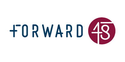 Logo with the words 'FORWARD 43', featuring 'FORWARD' in blue and a red circle with the number 43 inside.
